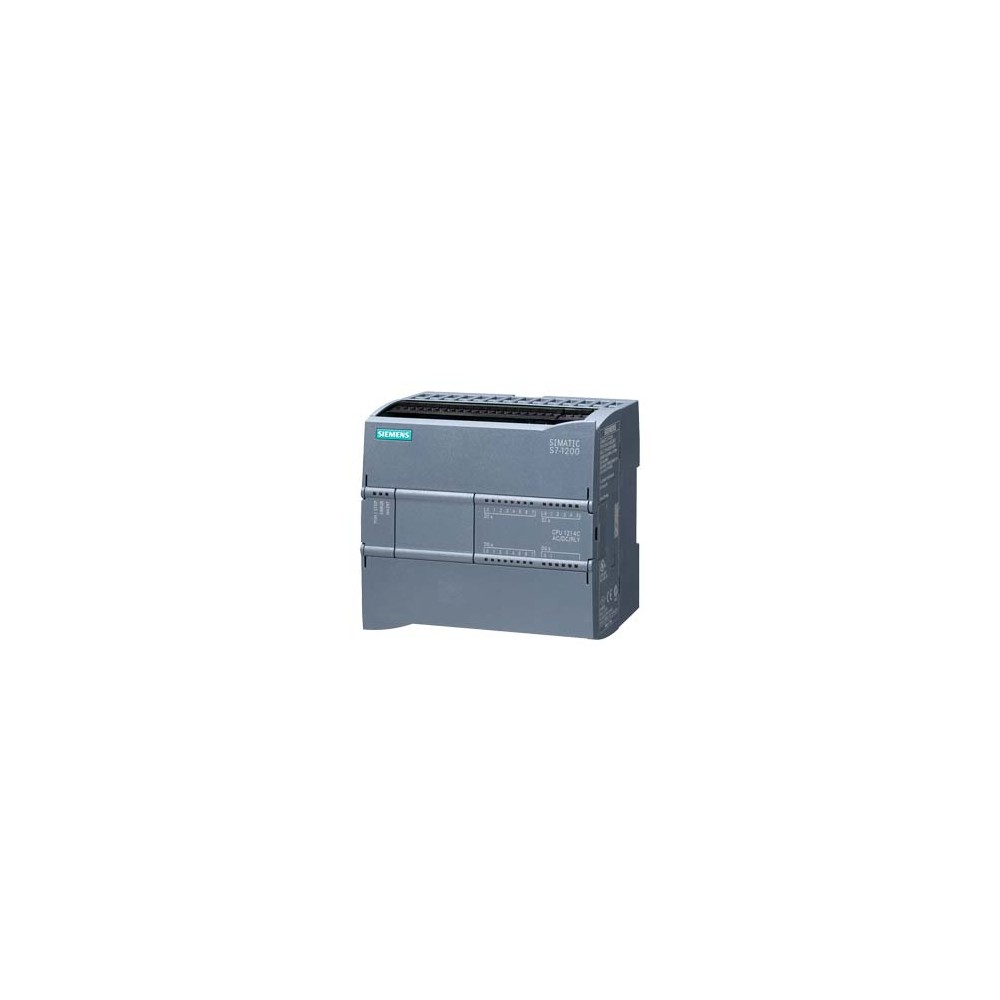 SIMATIC S7-1200, CPU 1214C, compact CPU, AC/DC/relay, onboard I/O: 14 DI 24 V DC; 10 DO relay 2 A; 2 AI 0-10 V DC, power supply: AC 85-264 V AC at 47-63 Hz, program/data memory 150 KB
