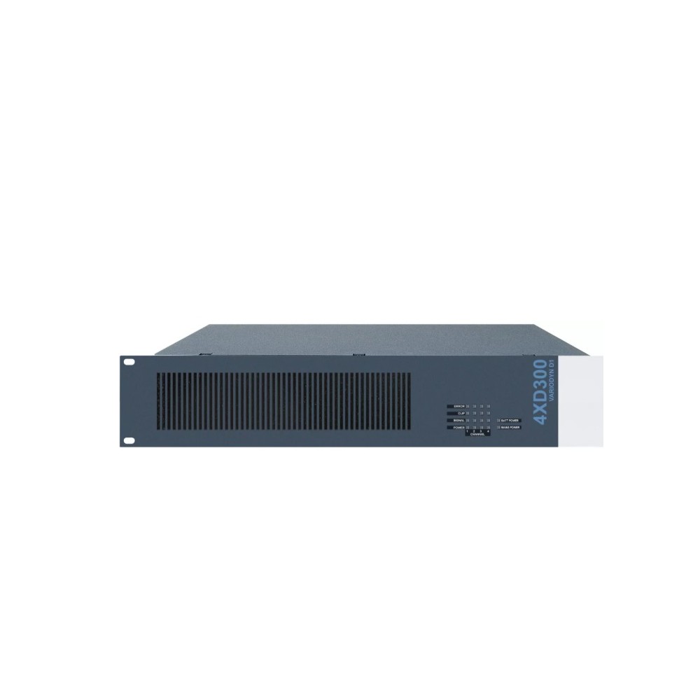 Sınıf D teknolojilerine sahip VARIODYN D1 acil anons sistemi için güç amplifikatörü, dört bağımsız güç kanalı, galvanik izolasyonlu 100 V doğrudan çıkışlar, simetrik girişler, ani akım sınırlaması ve yumuşak başlatma ile donatılmıştır. 4XDxxxB serisi amplifikatörlerimizle karşılaştırıldığında, bir amplifikatör başka bir amplifikatörü destekleyebilir.
